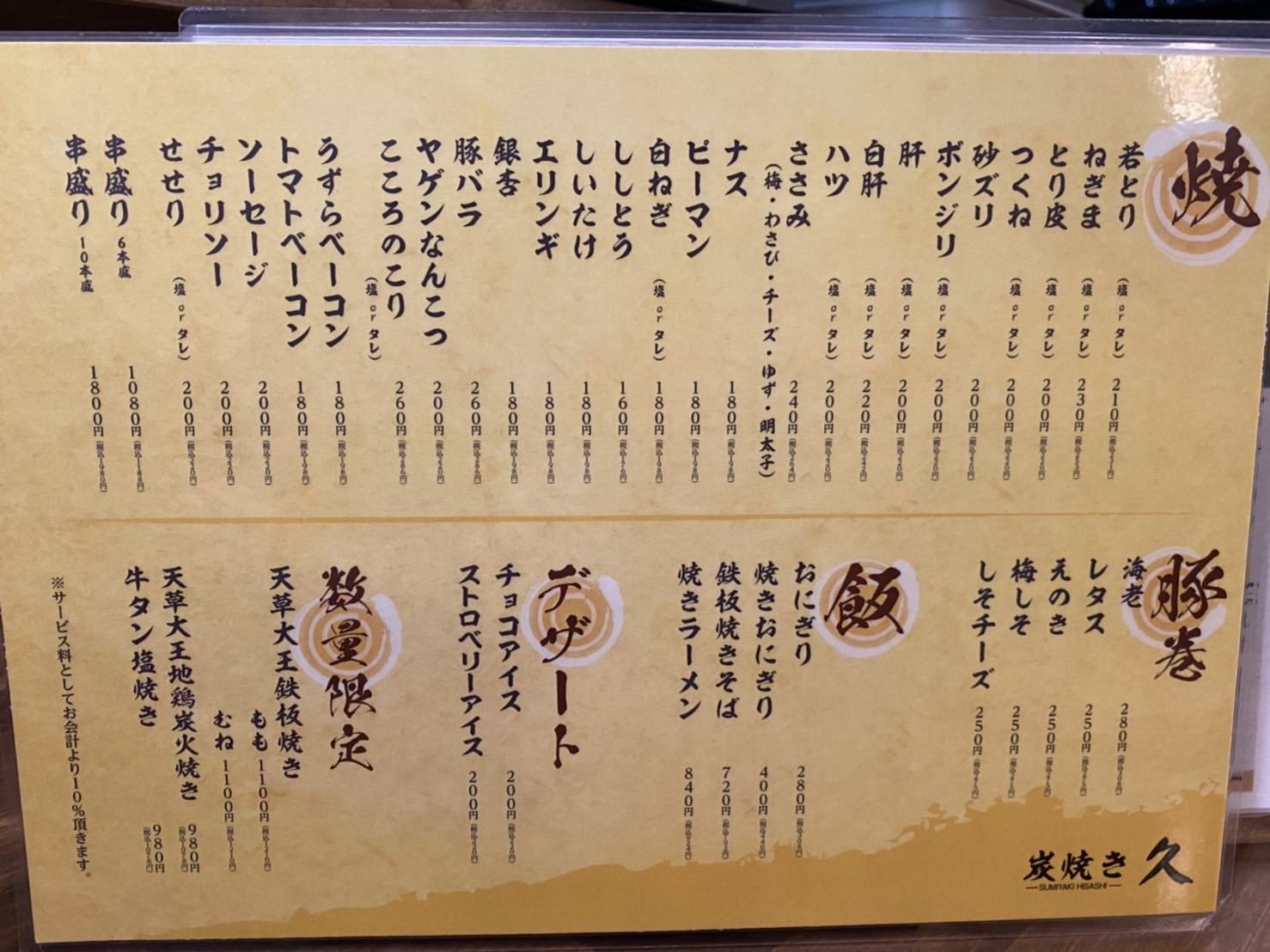 | 店名 | 炭焼き 久 |
